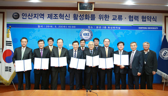 한양대 ERICA는 23일 본관에서 ‘안산지역 제조혁신 활성화 교류·협력 협약식’을 개최했다.