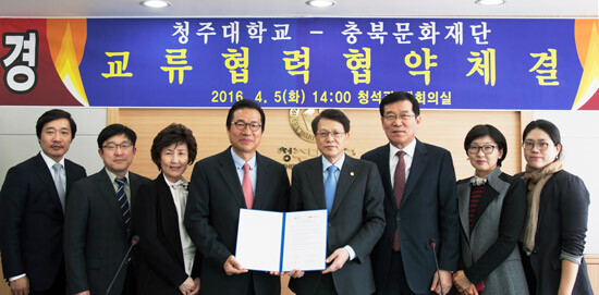 청주대학교(총장 김병기)는 5일 본관 대회의실에서 충북문화재단과 지역 문화예술 발전을 위한 교류협력 협약을 체결했다.