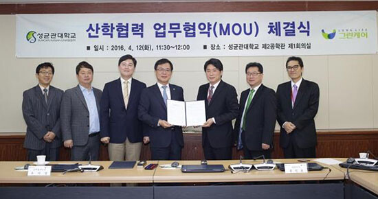 이에 성균관대는 지난 12일, (주)롱라이프그린케어(대표 홍인표)와 산학협력 업무협약을 체결했다. 이날 협약식에는 성균관대 유지범 부총장(겸 LINC사업단장), 홍인표 ㈜롱라이프그린케어 대표를 비롯한 양 기관 주요인사가 참석했다.