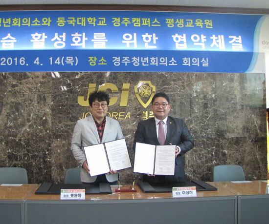 동국대학교 경주캠퍼스(총장 이대원) 평생교육원과 경주청년회의소가 지난 14일 경주청년회의소에서 지역의 평생교육 활성화에 관한 협약서를 체결했다.
