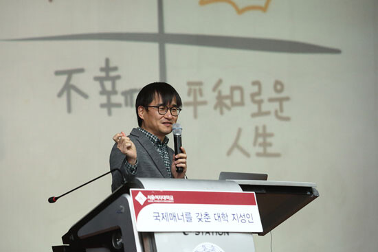 서울여자대학교(총장 전혜정)는 19일 학생누리관 소극장에서 소설가 김연수를 초청해 '국제매너를 갖춘 대학 지성인' 특강을 열었다.