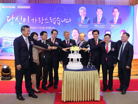 경북대학교와 경북대학교총동창회가 지난 21일 경북대 글로벌플라자 경하홀에서 제20대 국회의원선거에 당선된 동문들을 대상으로 축하연을 개최했다.