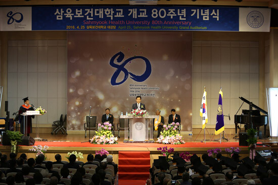삼육보건대학교(총장 박두한)는 25일 황춘광 이사장, 안규백 국회의원, 이승우 한국전문대학교육협의회장, 유덕열 동대문구청장 등 정관계 인사를 비롯한 내빈들과 국내외 동문, 교직원 및 재학생 총 500여 명이 참석한 가운데 대강당에서 개교 80주년 기념식을 가졌다.