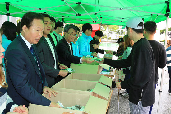 특히 대각 빵 나눔 행사에서는 신명국 원광학원 이사장과 보직교수, 총학생회장 등이 학생들을 비롯한 구성원들에게 직접 빵을 나눠 주는 등 모두가 함께하는 나눔의 축제가 진행됐다.