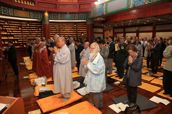 동국대는 29일 문화관 2층 대각전에서 '동국대 불교학과 창설 110주년 기념식'을 개최했다. 기념식에는 동국대 한태식 총장과 이사장 성타스님을 비롯해 불교대학장 종호스님, 고영섭 불교학과장, 김용표 불교학과 동문회장, 동문 및 재학생 등 100여 명이 참석했다.