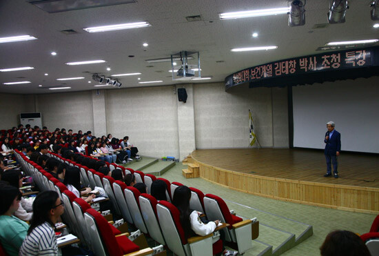 충북보건과학대학교(총장 박용석)는 최근 김태창 박사를 초청해 간호학과 재학생 200여 명을 대상으로 '생명이란 무엇인가'란 주제의 특강을 진행했다.