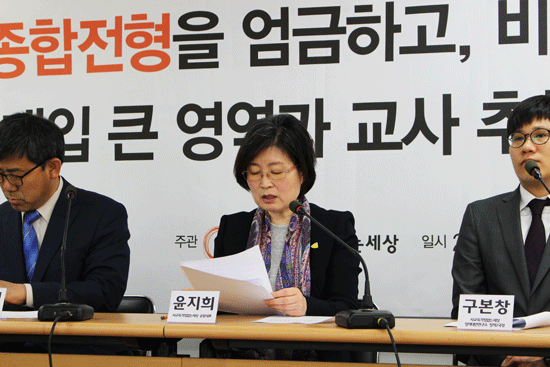 사교육걱정은 "학생부종합전형 개선 목표는 학교 교육의 수업과 평가를 개선시켜 고교 학생부의 교과 기록을 대학은 물론 우리 사회 전체가 신뢰할 수 있도록 만드는 것"이라며 "이러한 교육환경을 만들기 위해서는 능력 및 과정 중심의 수업과 평가 개선이 이뤄져야 한다"고 주장했다.