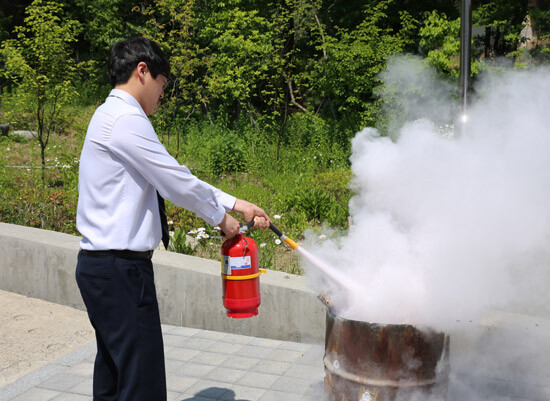 소방안전업체 직원의 감독 하에 교직원 40여 명이 소화기 사용법을 숙지하고, 화재 시 대피요령, 소화전 운용, 상수도 소화전 위치 파악, 방화셔터 관리방법 등의 훈련을 진행했다.