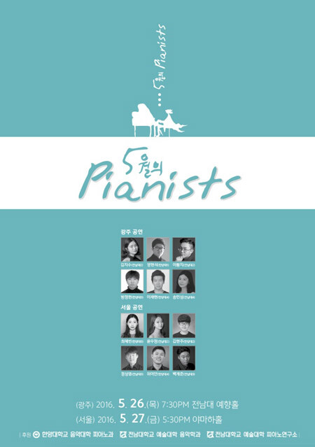 전남대학교(총장 지병문) 예술대학 음악학과 피아노 전공 학생들과 한양대학교(총장 이영무) 음악대학 피아노과 학생들의 교류음악회가 개최된다. 음악회 제목은 '5월의 피아니스트'.