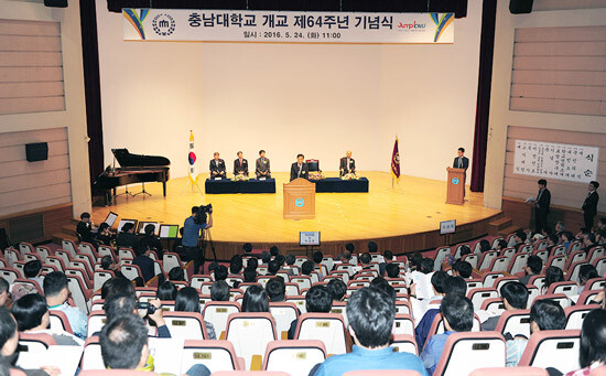 충남대는 24일 정심화국제문화회관 백마홀에서 오덕성 충남대 총장 등 대내외 인사와 대학구성원이 참석한 가운데 '개교 64주년 기념식'을 개최했다.