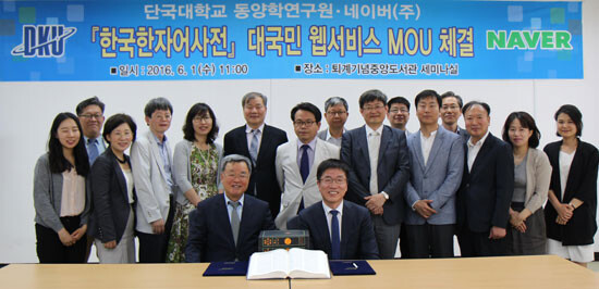 1일 단국대 동양학연구원은 ㈜네이버(대표이사 김상헌)와 우리말 표기를 위해 고유한자를 집대성한 「한국한자어사전」을 네이버 사전 서비스 실시를 위해 업무협약을 체결했다.