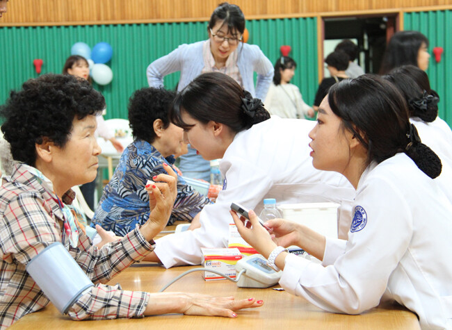 노인건강증진대회에서는 건강검진을 비롯해 머리손질, 네일아트, 피부마사지 등 어르신들의 건강을 위한 프로그램이 다양하게 진행됐다. 이에 석외향 할머니(82)는 "매주마다 손녀 같은 학생들이 꼬박꼬박 찾아와 말벗도 해주고 혈압과 당뇨검사도 해준다"면서 "오늘처럼 대학으로 초청해 같이 놀아주고, 먹여주고 하니 정말 즐겁다. 친손주보다 더 낫다"라고 말했다.