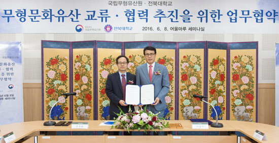 이남호 총장은 "급격한 산업화로 소멸돼가고 있는 무형문화 유산 보호가 범국가적으로 필요한 시기에 양 기관이 힘을 모으게 된 것은 매우 적절하다고 생각한다"며 "이번 협약이 우리나라 무형문화 유산 발전에 큰 시너지를 낼 수 있는 계기가 되길 바란다"고 말했다.