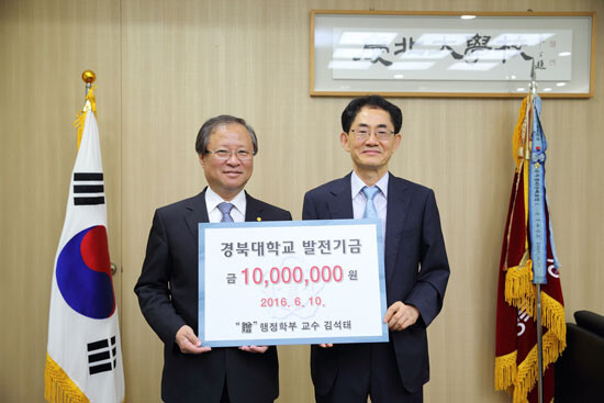 경북대학교 행정학부 김석태 교수가 제자 사랑 실천을 위해 발전기금 1000만 원을 경북대에 전달했다.