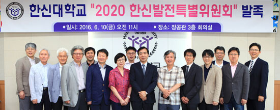 한신대학교(총장서리 강성영)는 대학의 지속적 발전을 위한 '2020 한신발전특별위원회'(이하 특별위원회) 발족식을 10일 장공관 1318회의실에서 가졌다.