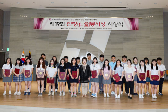 대구보건대학교(총장 남성희)가 대구보건대 연마관 국제회의실과 본관3층 대회의실에서 제19회 인당봉사상 시상식을 가졌다.