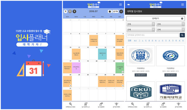 수많은 입시자료들이 쏟아지지만 바쁜 수험생들이 원하는 입시자료를 스스로 찾기가 쉽지 않은 상황에서 '입시플래너-대학가자'는 누구나 사용하는 입시플래너를 활용, 대학입시정보와 자신의 일정관리를 동시에 할 수 있다는 점에서 큰 장점으로 꼽힌다.
