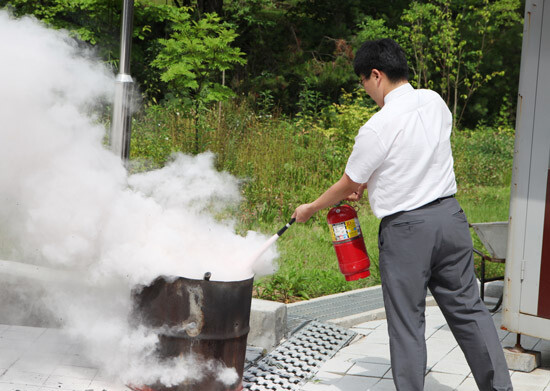 계산 119안전센터 훈련통제관의 관리·지도에 따라 경인여대 교직원들은 팀을 이뤄 실제 소화전과 소화기를 이용해 화재를 진압하는 훈련을 실시했다.