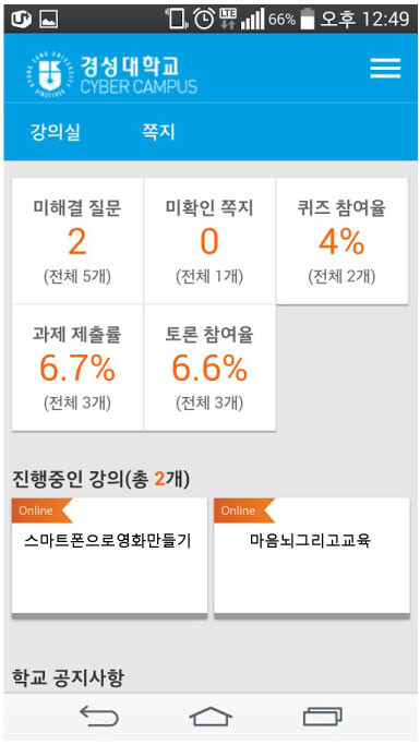 경성대학교(총장 송수건) 교수학습개발센터가 스마트 기기를 통한 강의 시청 및 교수-학생 간 소통이 가능한 '스마트 러닝 지원 시스템'을 공개했다.