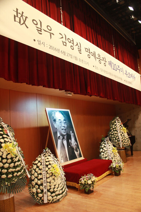 안양대학교(총장 정창덕)가 지난 27일 오전 11시 일우중앙도서관 아리홀에서 '故 일우 김영실 명예총장 제 10주기 추모예배'를 드렸다.