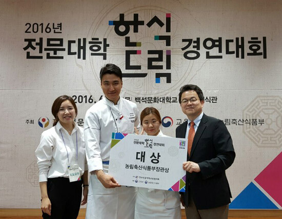 대림대학교(총장 남중수) 호텔조리과 학생들이 한국전문대학교육협의회가 주최한 '2016년 전문대학 한식드림(Dream) 경연대회'에서 대상을 수상했다.