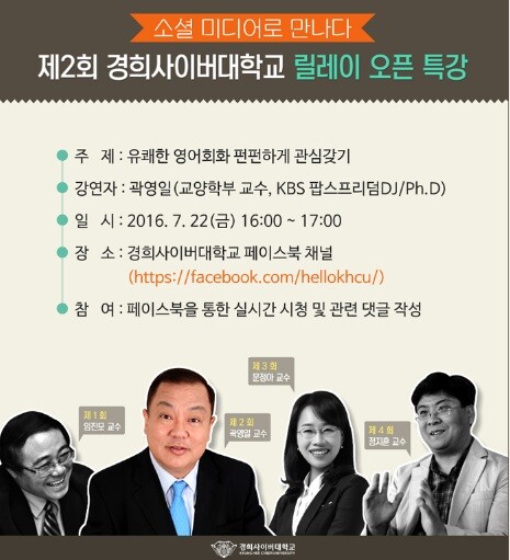 특강에 관심 있는 사람은 누구나 22일 오후 4시에 경희사이버대 페이스북에 접속하면 된다.