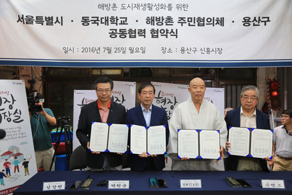 동국대학교(총장 한태식)가 서울시(시장 박원순), 용산구(구청장 성장현), 해방촌 주민협의체(대표 손행조)와 해방촌 활성화에 나선다.