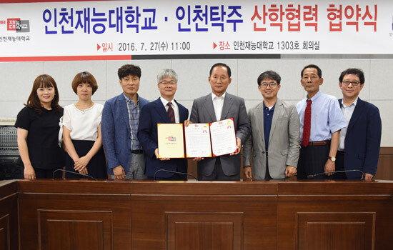 [대학저널 유제민 기자] 인천재능대학교(총장 이기우)는 27일 인천재능대 본관 13층 회의실에서 인천탁주와 산학협력 협약식을 가졌다.