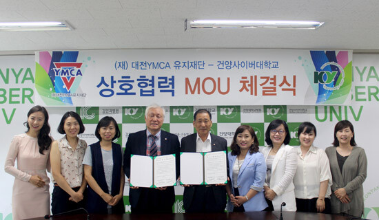 [대학저널 유제민 기자] 건양사이버대학교(총장 김희수)는 (재)대전 YMCA 유지재단과 27일 건양사이버대 324호 회의실에서 상호발전을 위한 협약을 체결했다.