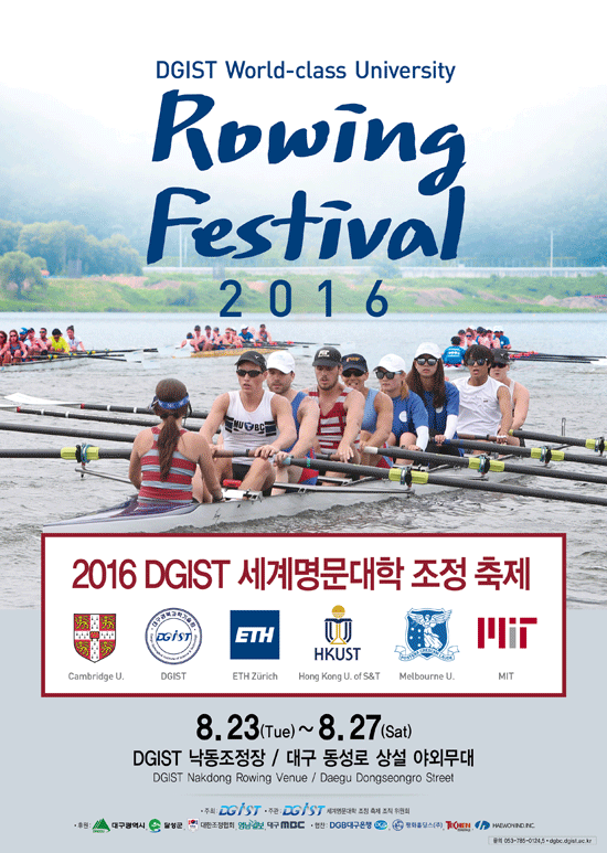 [대학저널 신효송 기자] DGIST(총장 신성철)가 오는 23일부터 27일까지 DGIST 낙동조정장과 대구시 일원에서 글로벌 융복합 축제 '2016 DGIST 세계명문대학 조정 축제'를 개최한다.