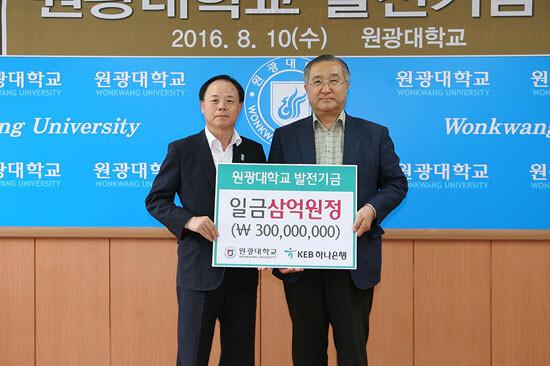 [대학저널 신효송 기자] 원광대학교(총장 김도종) 주거래 은행인 KEB하나은행이 지난 10일 발전기금으로 3억 원을 기탁했다.