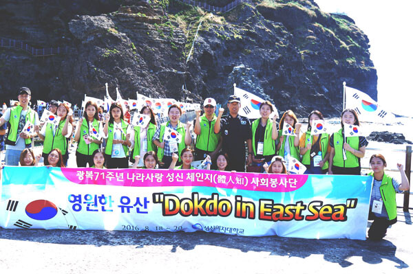 [대학저널 이원지 기자]성신여자대학교(총장 심화진) 체인지(體人知) 사회봉사단 23명은 광복 71주년을 맞아 지난 18일부터 20일까지 '영원한 유산 Dokdo in East Sea'를 주제로 독도 역사문화를 탐방했다.