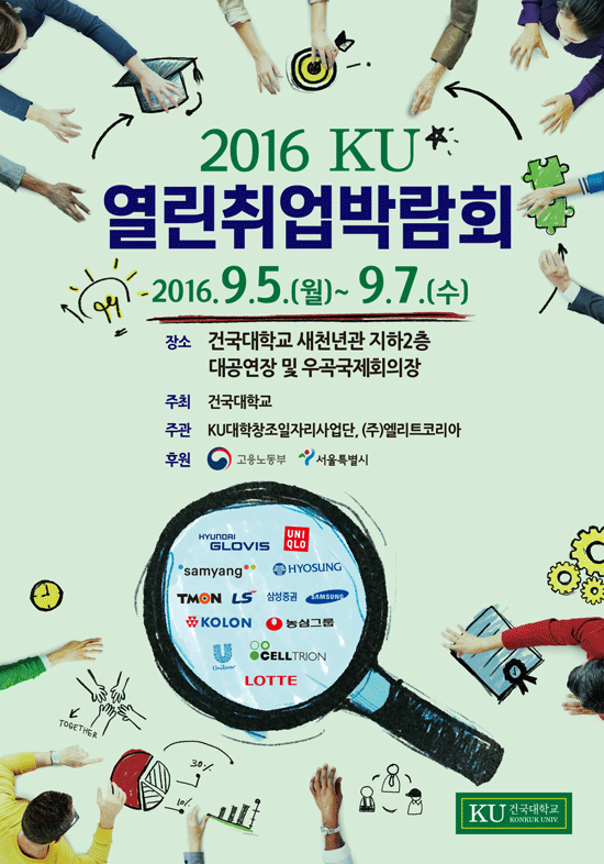 [대학저널 신효송 기자] 건국대학교(총장 민상기)가 오는 5일부터 7일까지 건국대 서울캠퍼스 새천년관 대공연장 및 우곡국제회의장에서 국내외 60여 개 기업을 초청, '2016 KU 열린취업박람회'를 개최한다.