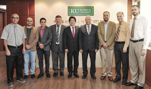 [대학저널 이원지 기자] 팔레스타인 폴리테크닉대학(Palestine Polytechnic University) 이마드 카티브(Imad Khatib) 총장 일행이 건국대학교(총장 민상기)를 방문, 학생 상호파견과 BT(생명공학), IT(정보기술), 공학분야 학술교류 확대 등에 대해 논의했다.