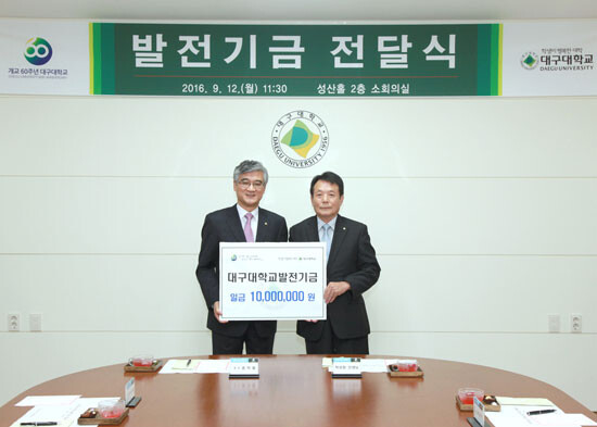 대구대 운전기사 박성원 씨는 지난 12일 대구대 경산캠퍼스 성산홀 2층 소회의실에서 홍덕률 총장 등 대학 관계자 10여 명이 참석한 가운데 발전기금 전달식을 가졌다.