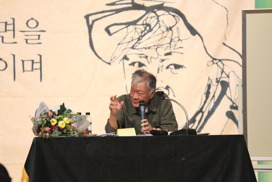 김훈 작가는 또 "요즘 많은 정치인들이 의견을 사실로 말하고, 사실을 의견처럼 말하고 있다"며 "이같은 정치적 언어의 뻔뻔스러움이 우리사회를 단절하고, 분열시키고 있다"고 꼬집었다.
