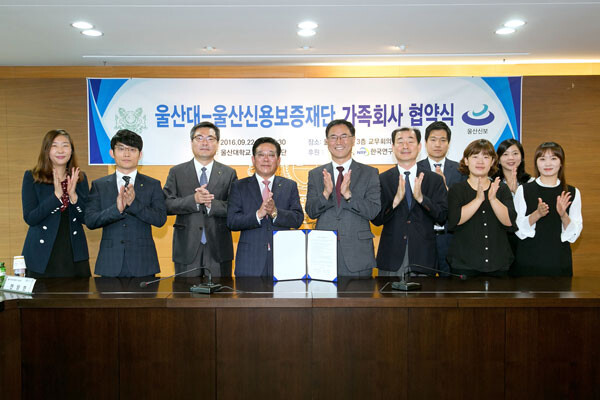[대학저널 신효송 기자] 울산대학교(총장 오연천)와 울산신용보증재단(이사장 한양현)이 22일 울산대 교무회의실에서 맞춤형 인력양성 및 산학협력활동 활성화 등 지역발전과 상호간 상생을 위한 가족회사 협약을 체결했다.