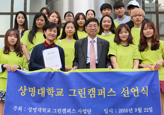상명대는 22일 서울캠퍼스 대학본부에서 그린캠퍼스 실천 선언식을 갖고 ▲지속가능한 환경 친화적 그린캠퍼스 구축 계획 수립 및 시행 ▲기후변화와 온실가스 감축 관련 교육과정 운영 ▲다각적인 에너지 절감 실천운동 등의 내용을 담은 선언문을 발표했다.