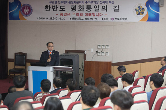 [대학저널 유제민 기자] 전북대학교(총장 이남호)가 유호열 민주평화통일자문회의 수석부의장을 초청, 남북관계와 통일 등을 진단해보는 특강을 가졌다.