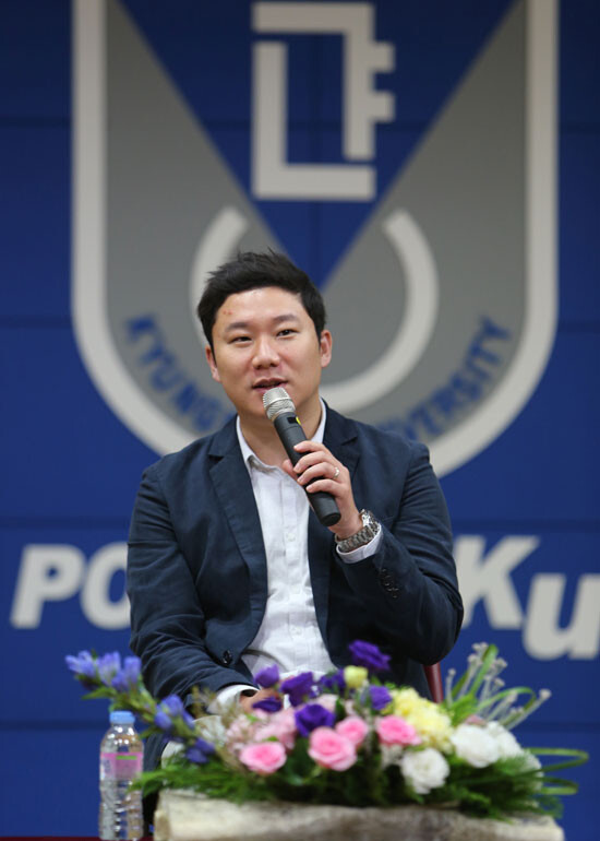 토크콘서트는 김연주 CJ경남방송 작가(신문방송학과 89학번)의 사회로 △올림픽 이야기 및 근황 토크 △키워드 토크(장남감 총, 아프니까 청춘이다, 최강 멘탈러) △진종오 선수, 정말 궁금해요~ △진종오 선수의 계획 등으로 나눠 질의응답 형식으로 진행됐다.