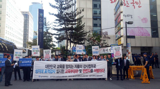 이에 구재단 측은 지난 4일, 상경투쟁에 나섰다. 이들은 청와대와 여의도 새누리당사 앞에서 "감사 청부로 표적감사를 실시한 교육부 장관과 관련자들을 처벌하라"고 촉구했다.