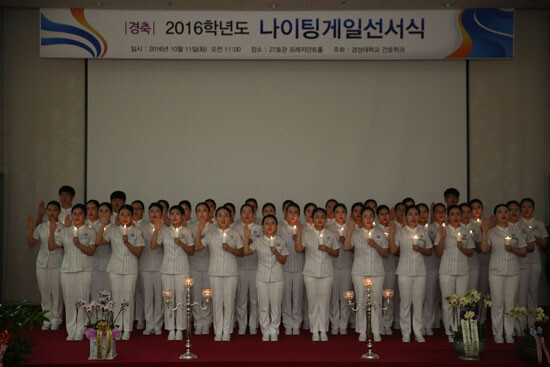 [대학저널 신효송 기자] 경성대학교(총장 송수건) 간호학과가 11일 경성대 27호관 프레지던트홀에서 '제4회 나이팅게일 선서식'을 갖고 전문 간호사로서 책임을 다할 것을 다짐했다.