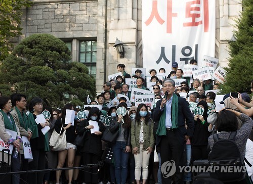 이화여대 학생들도 "이사회는 이화인의 목소리를 막고 섬김과 나눔의 이화 정신을 훼손하는 불통 행정과 졸속 행정, 비민주적 지배 구조를 철폐하고 민주적인 의사 결정 제도와 투명한 총장 선출 제도를 마련하라"고 주장했다. 이에 대해 이화여대 관계자는 "법인에서 새 총장 선출 건에 대해 논의하고 있는 것을 알고 있지만 확정된 것은 없다"고 밝혔다.