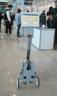 작품명은 '변형 가능한 밸런싱 로봇'입니다. 같은 학과 김건후, 김진광, 허승원 학생과 함께 작품을 제작했습니다. 이 작품의 역할은 박물관, 미술관, 전시회 등에서 관람객들에게 안내를 하는 것입니다. 관람객들이 작품을 더 쉽고 재밌게 감상할 수 있도록 로봇이 스스로 움직이며 정보를 전달하게 되죠. 4개의 바퀴로 이동하며 태블릿PC를 장착해 액정화면으로 안내를 진행합니다. 또한 화상통화도 가능합니다. 상황에 따라 4바퀴로도, 2바퀴로도 이동할 수 있어 지형이 다소 불안정한 곳에서도 문제 없이 이동하는 것이 특징입니다. 조작은 저희가 제작한 앱을 스마트폰에 설치함으로써 할 수 있습니다.