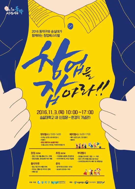 [대학저널 이원지 기자] 숭실대학교(총장 한헌수)가 오는 3일, 동작구와 함께 ‘2016 창업을 잡아라! 창업페스티벌’을 개최한다.