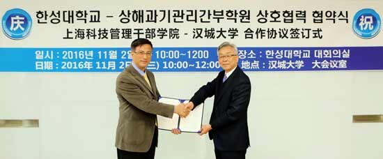 [대학저널 이원지 기자] 한성대학교(총장 이상한)는 2일 중국 상해과학기술관리간부학원(원장 왕지안핑)과 협약식을 가졌다.