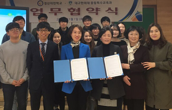 [대학저널 정성민 기자] 대구한의대학교 중등특수교육과(학과장 박선희)와 경산자인학교는 지난 1일 대구한의대 시청각실에서 상호협력 협약을 체결했다.