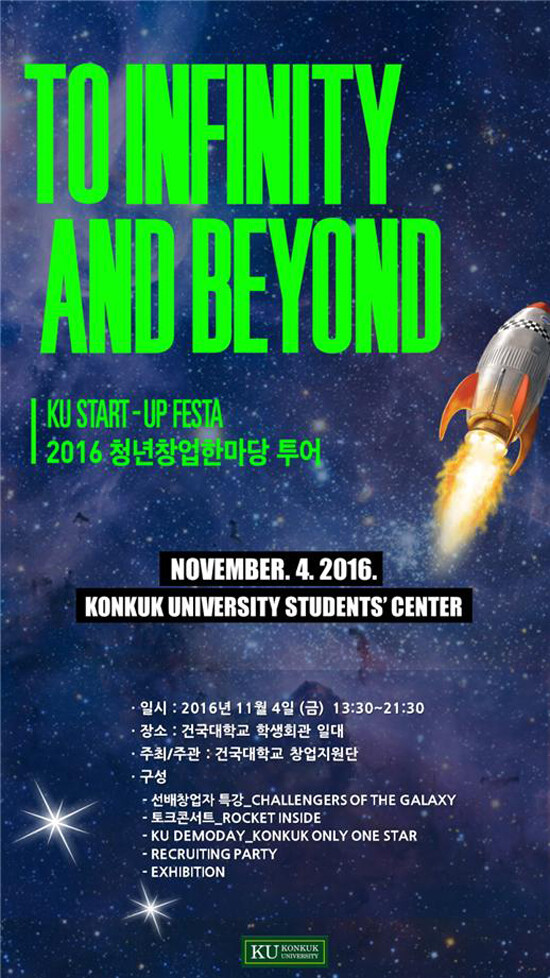건국대학교에서 창업을 준비하고 있는 8명의 (예비)창업자가 자신의 창업아이템을 선보이는 ‘KU 데모데이(DEMODAY)’, 스타트업에서의 인턴십을 희망하는 학생과 기업을 연결해주는 ‘리쿠르팅 파티’도 진행될 예정이다.