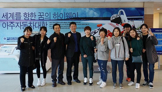 [대학저널 유제민 기자] 아주자동차대학(총장 신성호)은 지난 3일 노원여성인력개발원에서 자동차분야 직업훈련을 받고 있는 여성 교육생을 초청해 대학견학 행사를 가졌다. 이번 행사는 서울 노원여성인력개발원의 요청에 아주자동차대학이 화답해 열리게 됐다.