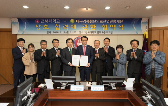 [대학저널 유제민 기자] 전북대학교(총장 이남호)가 9일 대구경북첨단의료산업진흥재단과 공동연구·우수인재 양성 등을 위해 상호협력 협약을 체결했다.